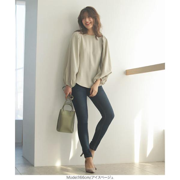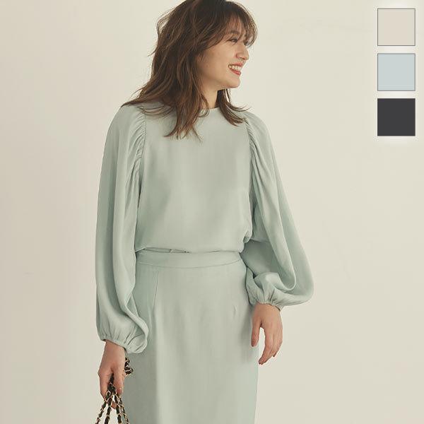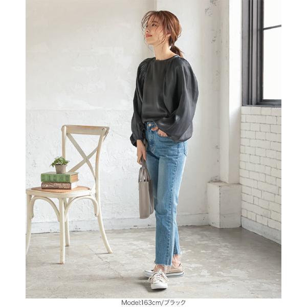 黒 オーロラツイルパワショルブラウス レディース 長袖 トップス 上品 大人 きれいめ オフィス C5167