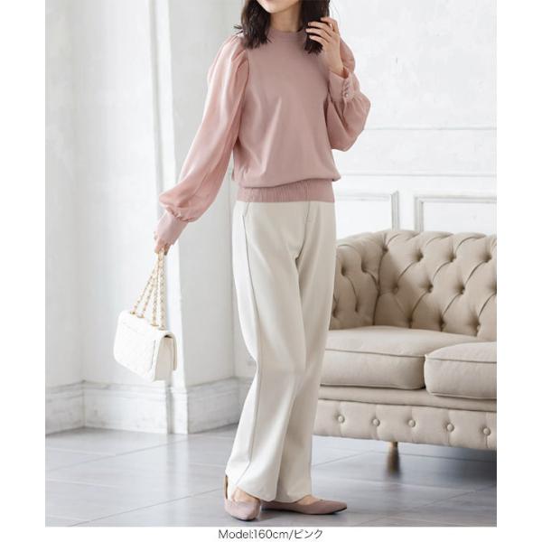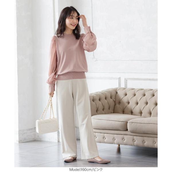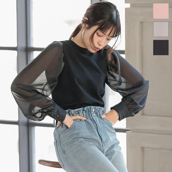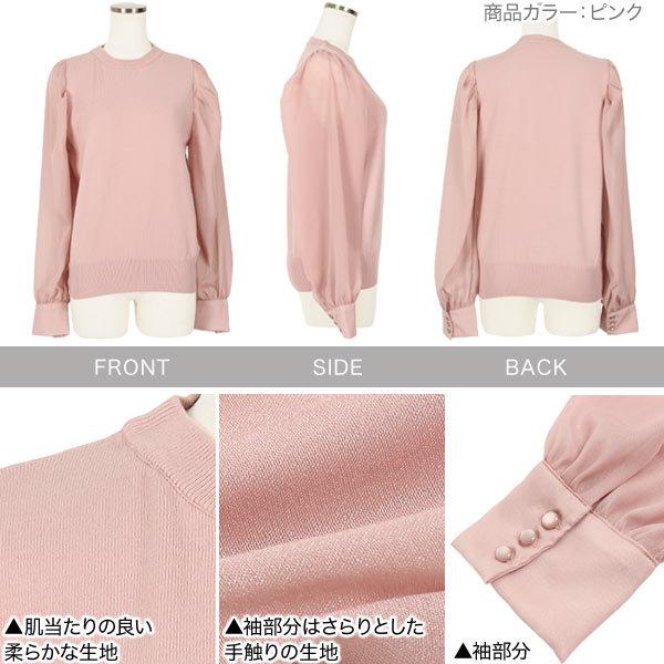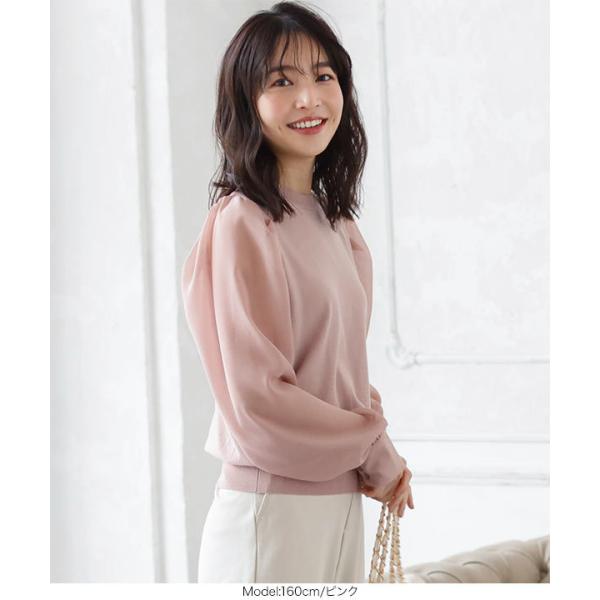 トレンドライクな袖の「シアー」感が目を惹くニットトップス。