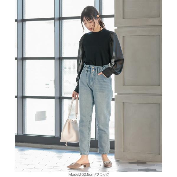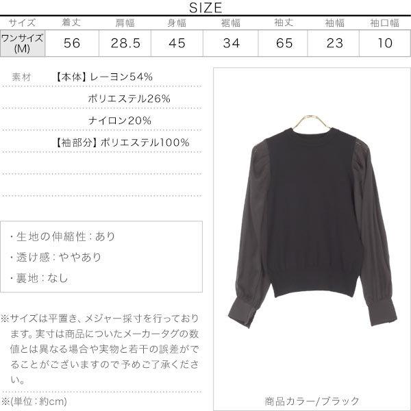 ニット トップス 袖シアー 透け 長袖 春 レディース 上品 きれいめ 大人 黒 C5295