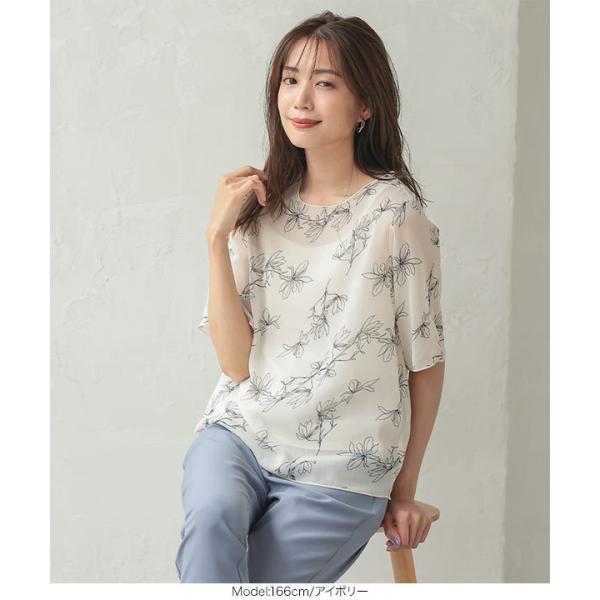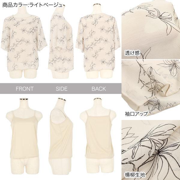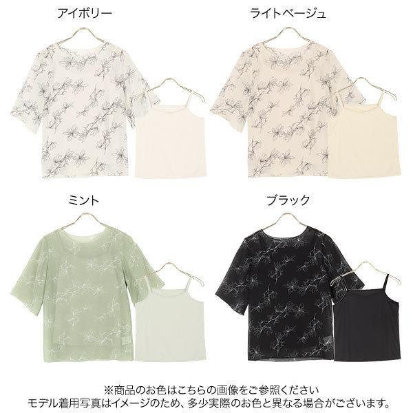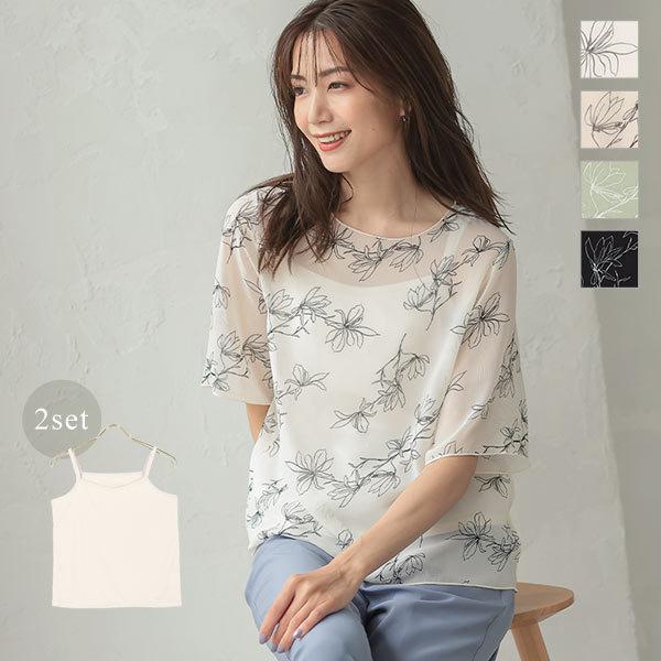 ブラウス レディース トップス 夏 花柄 インナー 2点セット インナー付き フラワープリント 楊柳 C5337