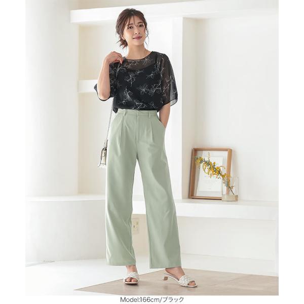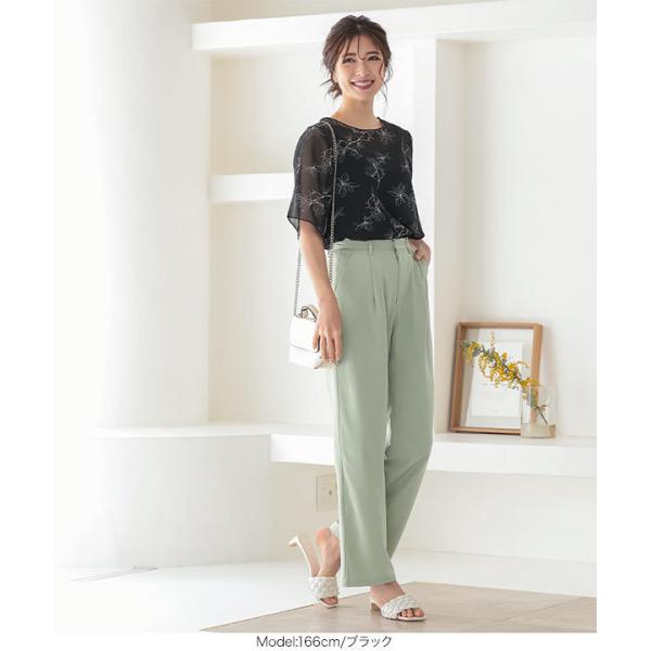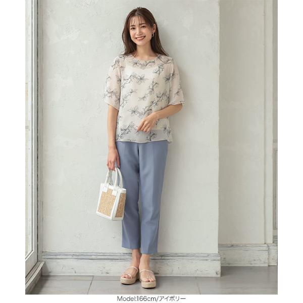 繊細なラインのフラワープリントが大人可愛い印象を演出するブラウス。
