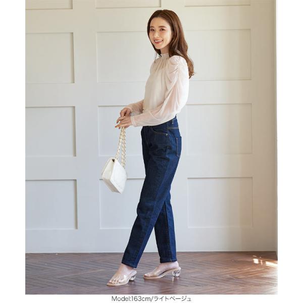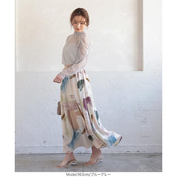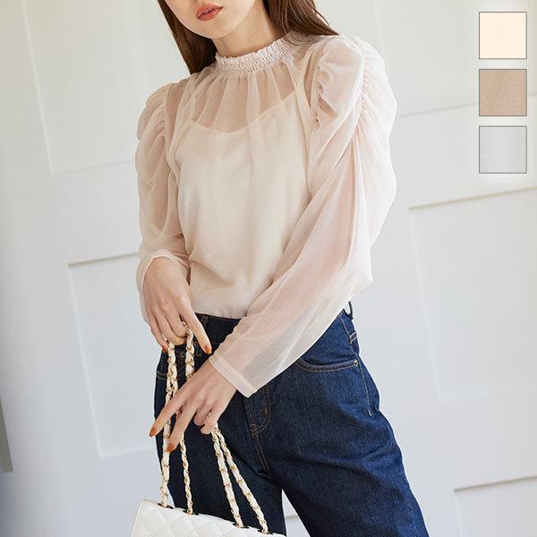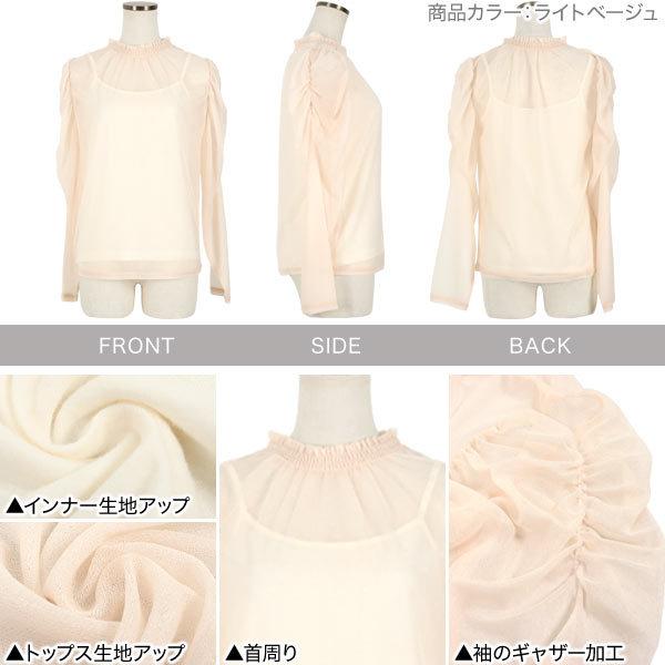 ブラウス トップス レディース 春 夏 2点セット 透け パワショル シアー 長袖 キャミ インナー 大人 フェミニン C5386