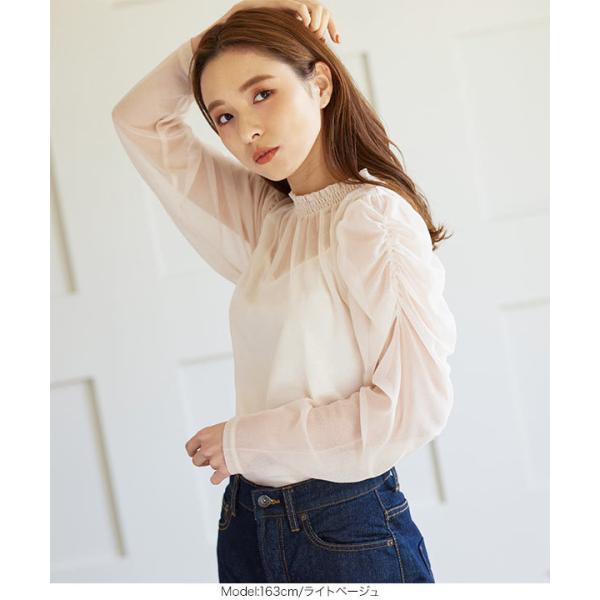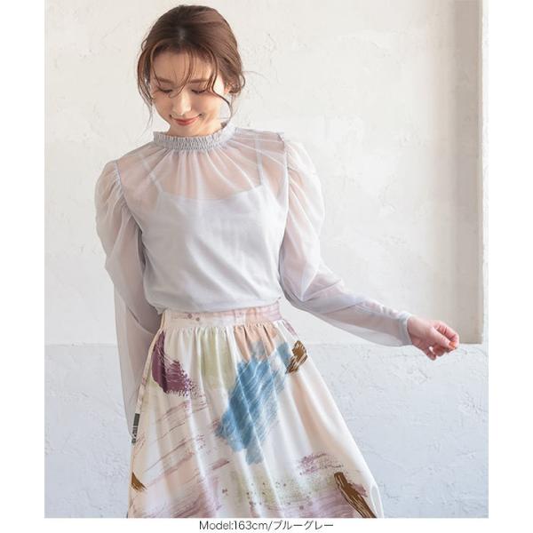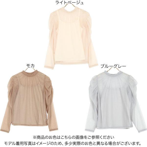 ブラウス トップス レディース 春 夏 2点セット 透け パワショル シアー 長袖 キャミ インナー 大人 フ...
