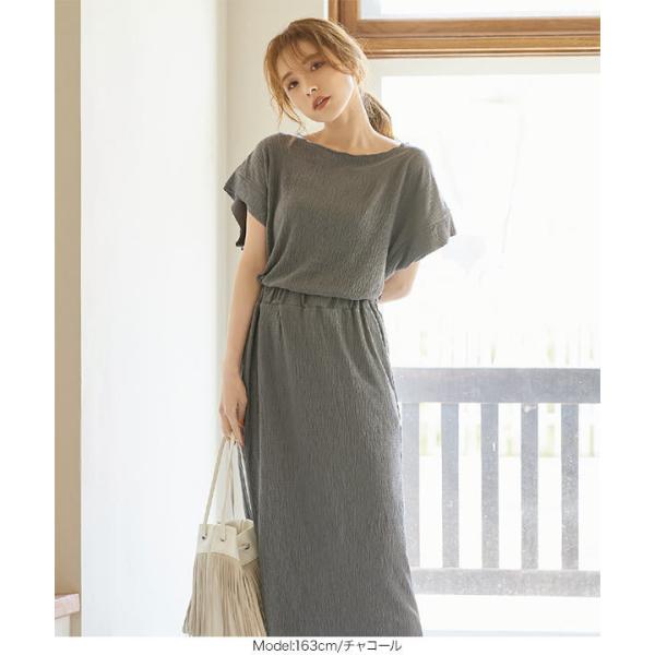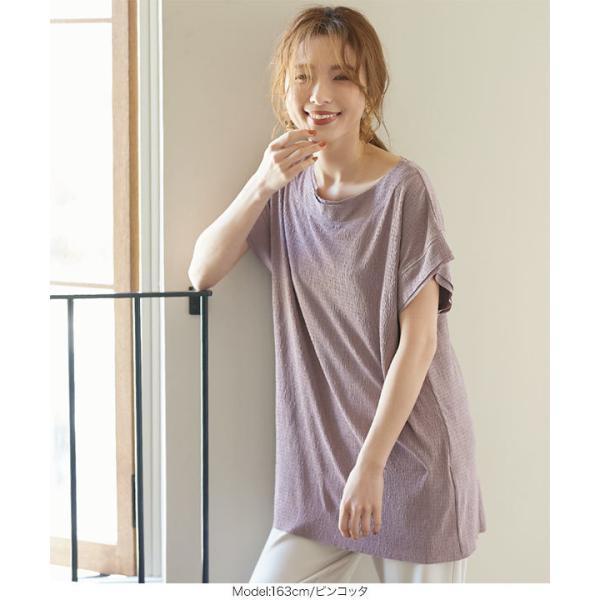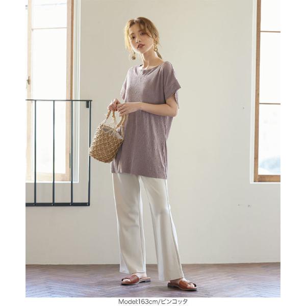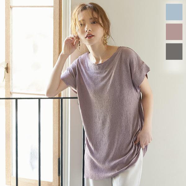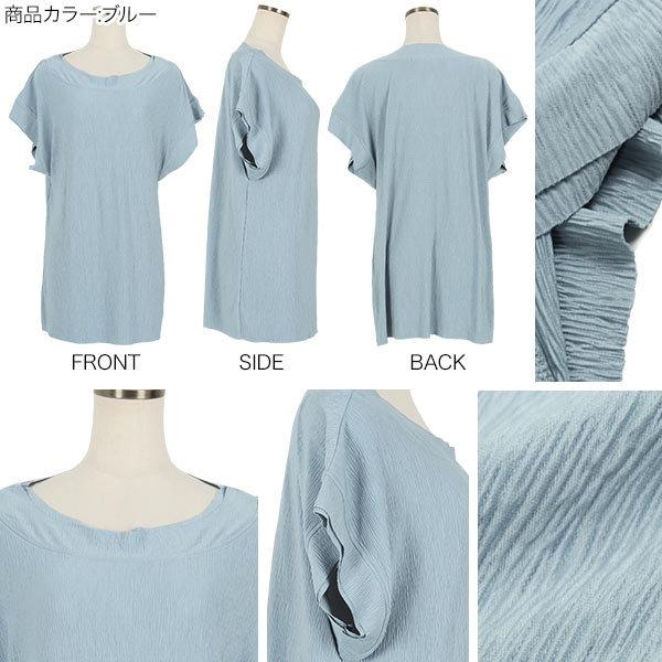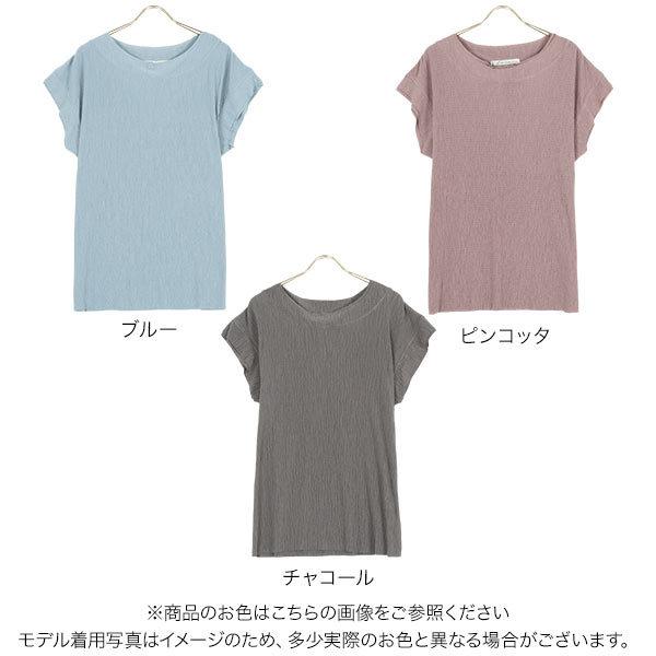 カットソー レディース トップス 夏 プルオーバー 半袖 プリーツ 切りっぱなし C5391