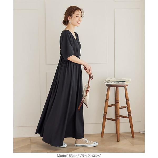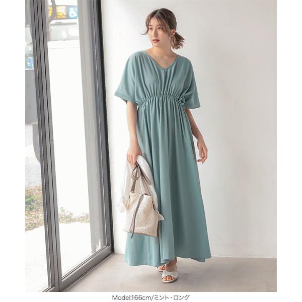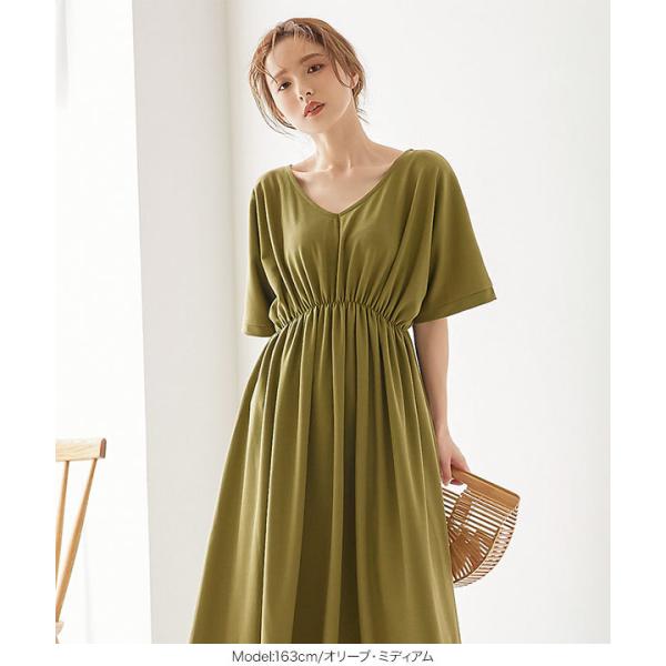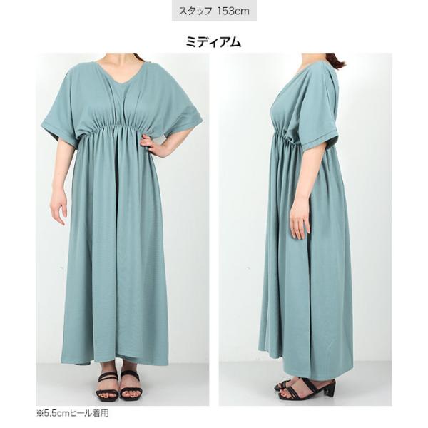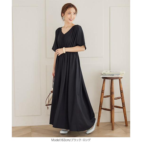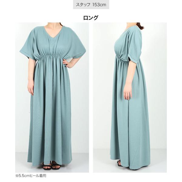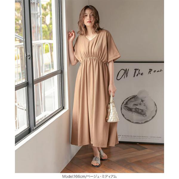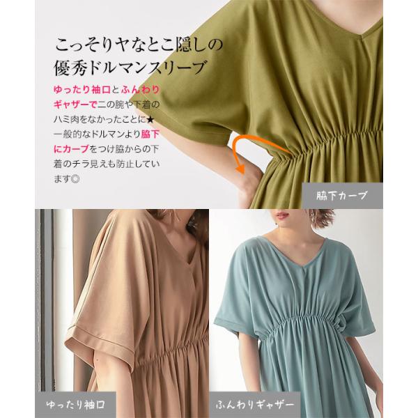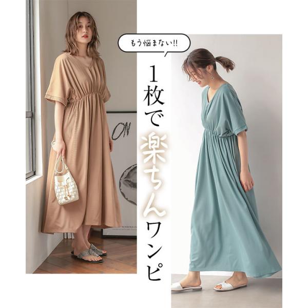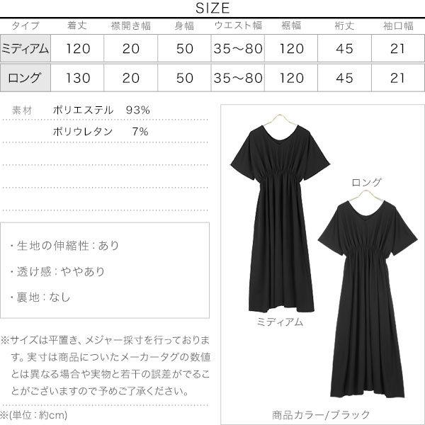 体型カバー 選べる2丈カットソーフレアワンピース レディース 半袖 ロング丈 ウエストシェイプ Vネック ワンピ E2798