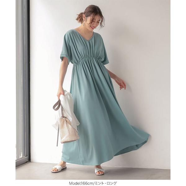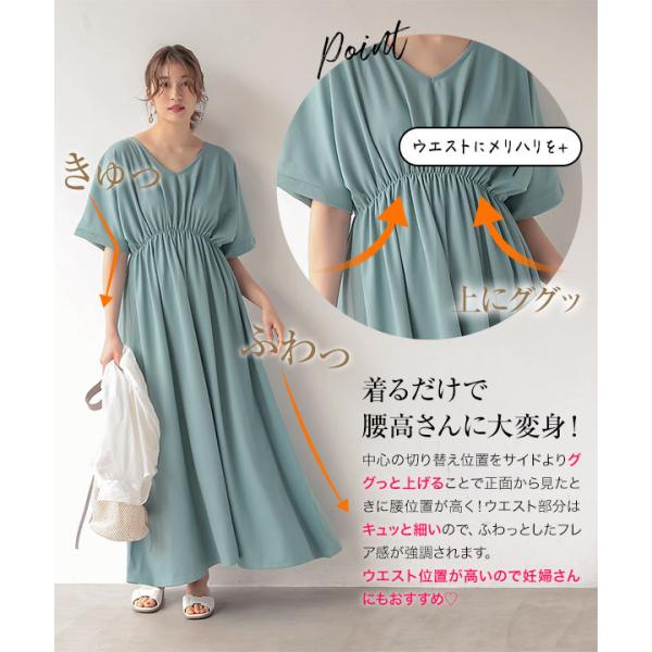 一枚でサマになる、ウエストのギャザーデザインが可愛いワンピース。