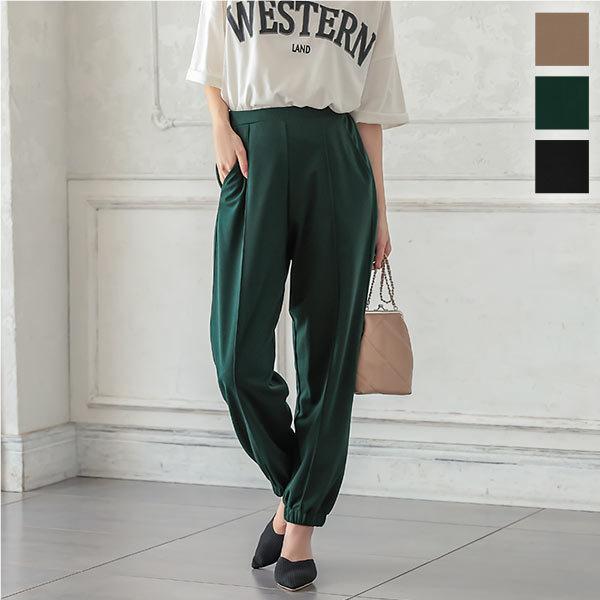 ジョガーパンツ レディース パンツ ボトムス 体型カバー ウエストゴム ワンマイル ロング丈 無地 M3421