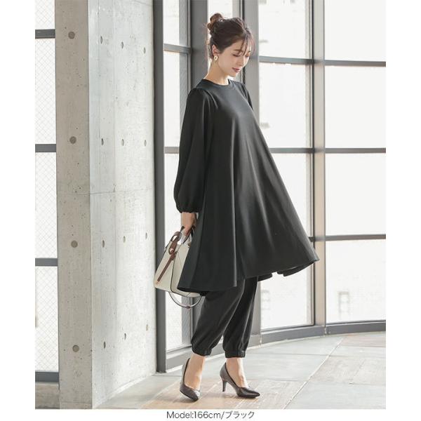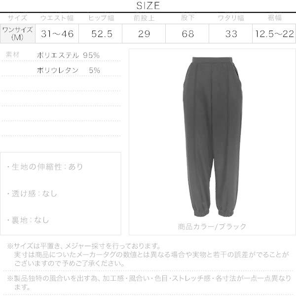 伸縮性のある素材使い+ヒップ周りがゆったりした裾絞りシルエットで着心地抜群。