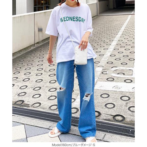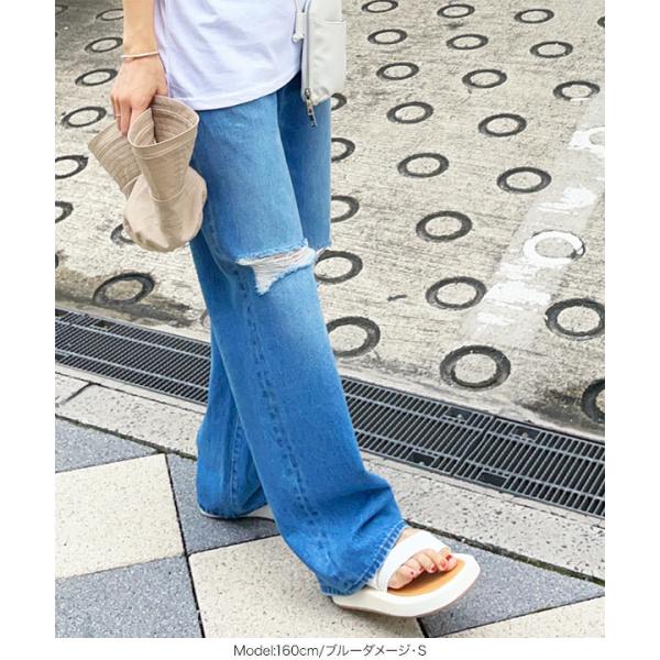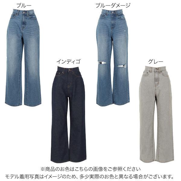 デニム ストレート デイリー デニムパンツ レディース ボトムス ゆったり ハイウエスト ダメージ シンプル 着回し M3438