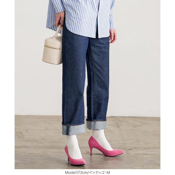 細すぎずワイド過ぎないストレートシルエットでスタイルアップ効果大◎ハイウエストなので、