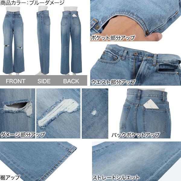 デニム ストレート デイリー デニムパンツ レディース ボトムス ゆったり ハイウエスト ダメージ シンプ...