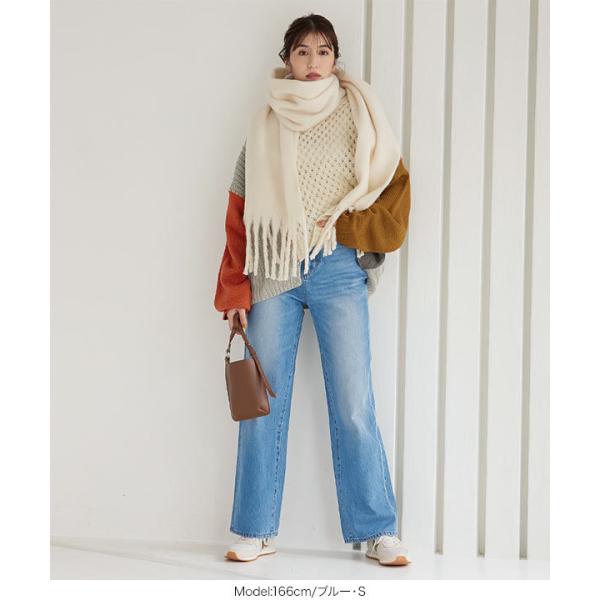 デイリー ストレートデニムパンツ レディース ボトムス デニム ハイウエスト ストレート シンプル 着回し M3438