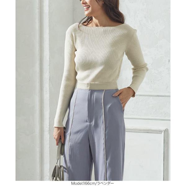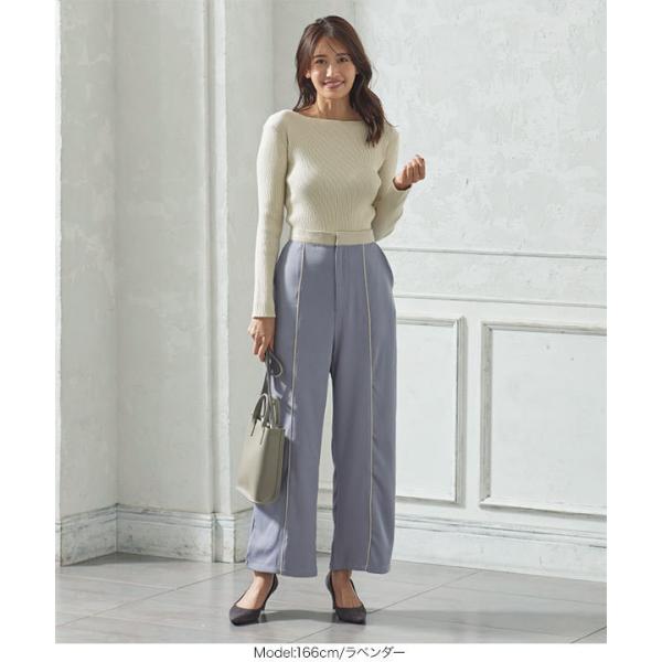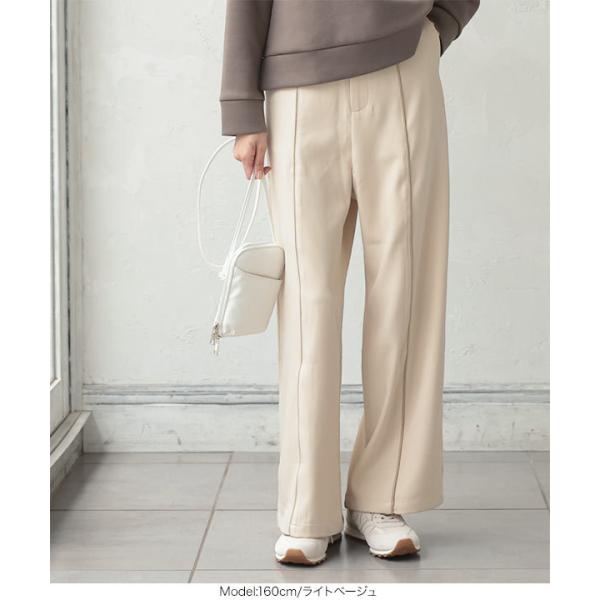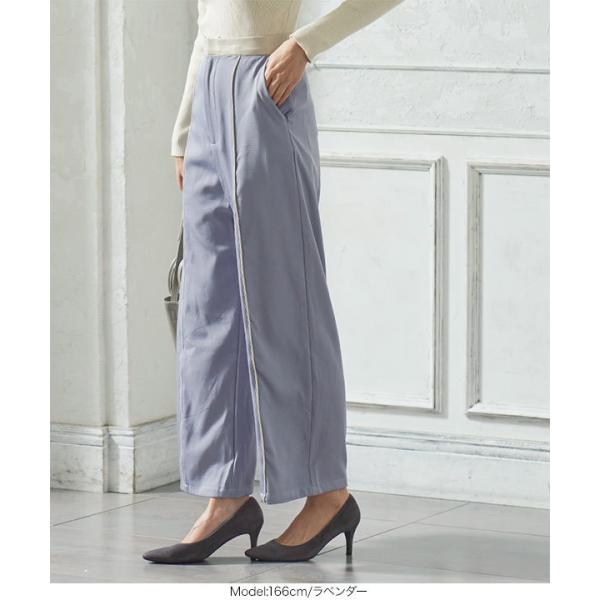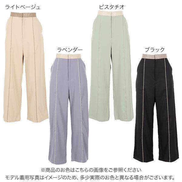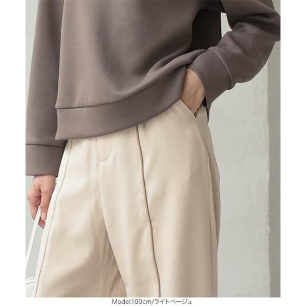 ウエストゴム 合皮パイピングパンツ レディース ボトムス ワイドパンツ ツイル センタープレス  きれいめ 秋 M3469