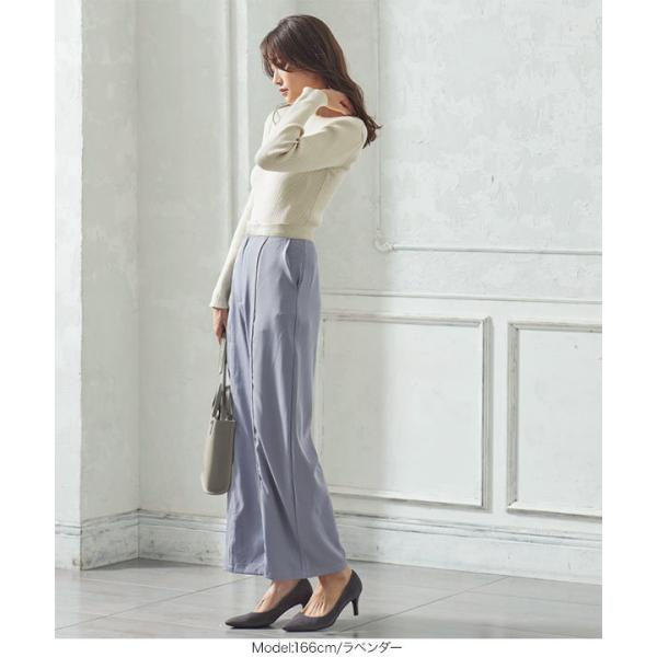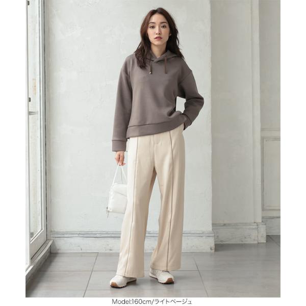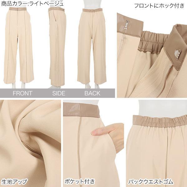 ワイドパンツ レディース ボトムス 秋 ウエストゴム センタープレス きれいめ 合皮 パイピング ツイル M...