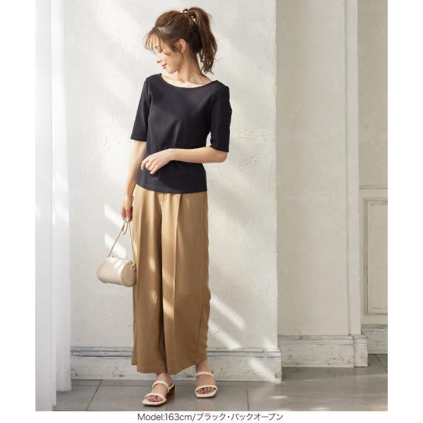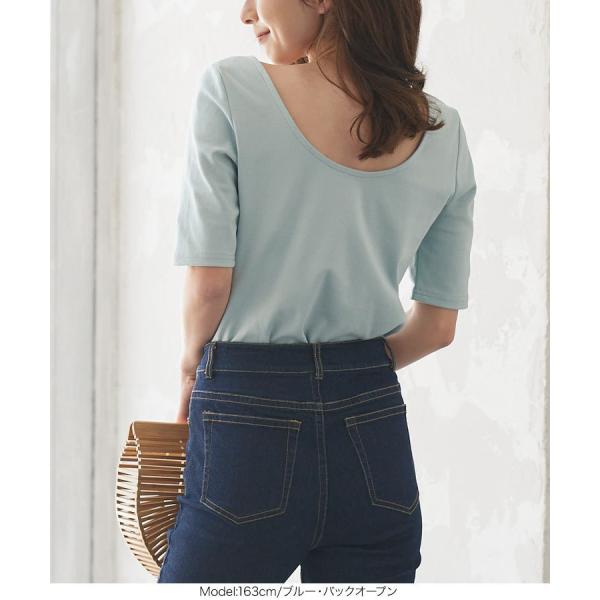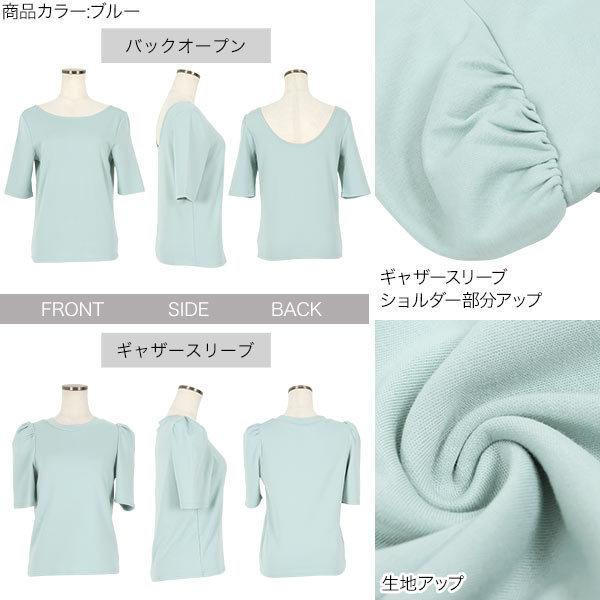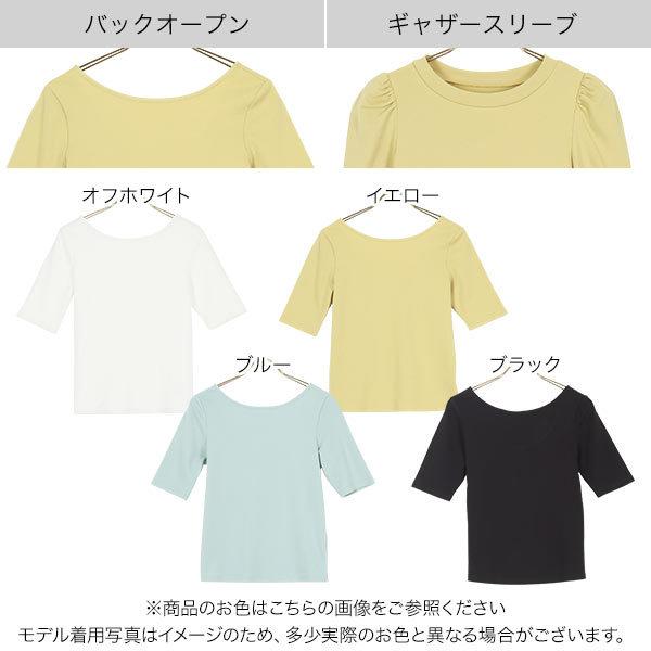 Tシャツ レディース トップス 夏 半袖 カットソー バックオープン ギャザー 選べる2タイプ C5504