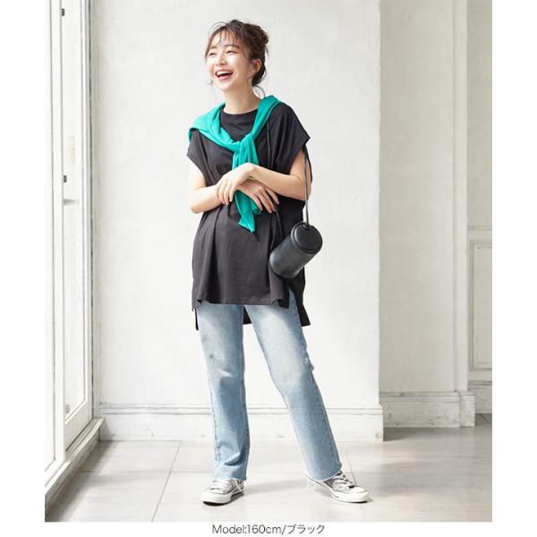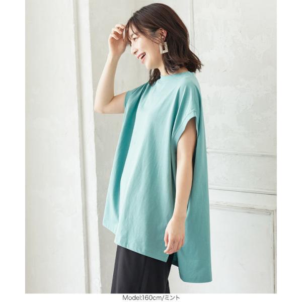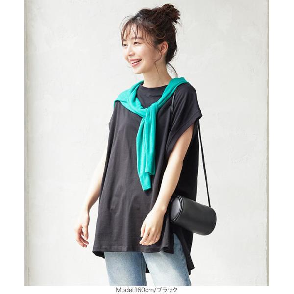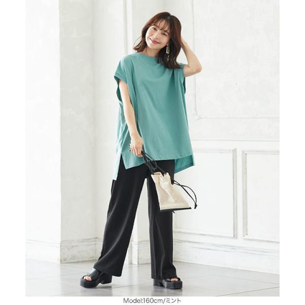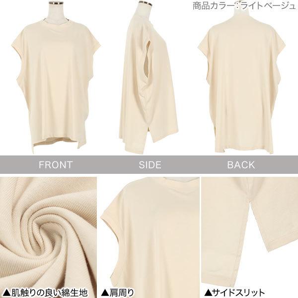 カットソー トップス レディース スリット ゆったり 秋 夏 クルーネック フレア リラックス シンプル C5630
