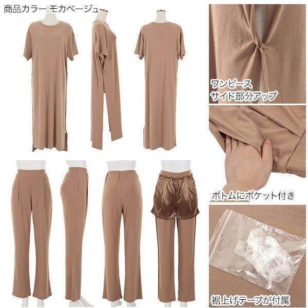 ワンマイルウェア 裾上げテープ付 セルフお直しロングスリットトップス パンツセットアップ レディース 部屋着 E2864