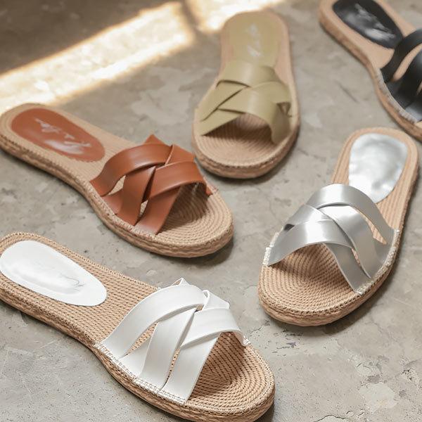 サッと履けてとっても軽いクロスベルトのフェイクジュートサンダル。