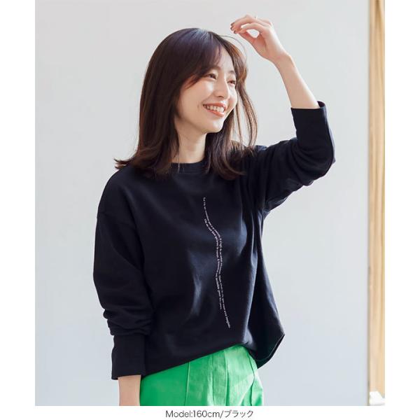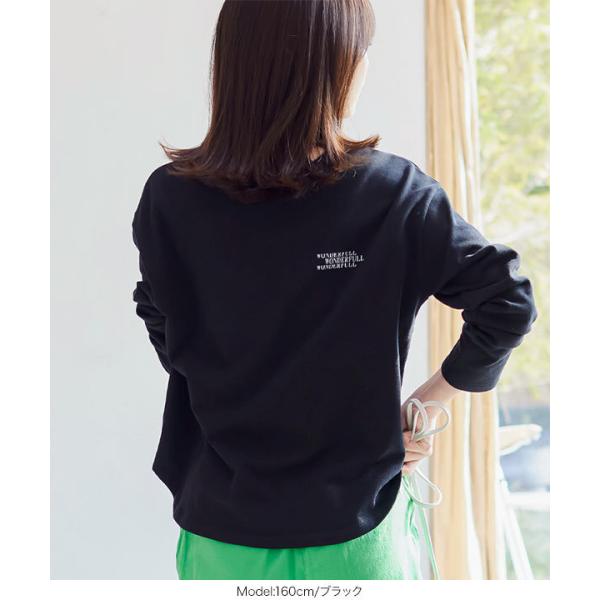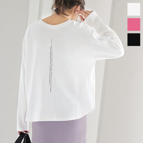 ロンT スウェット トップス レディース 春 カットソー 長袖 丸首 ロゴ プリント 前後2way C5940
