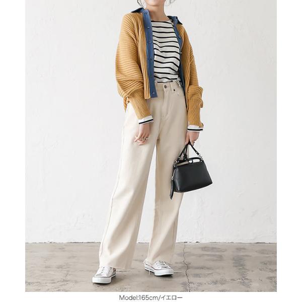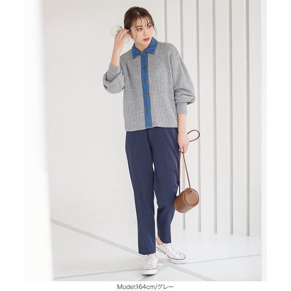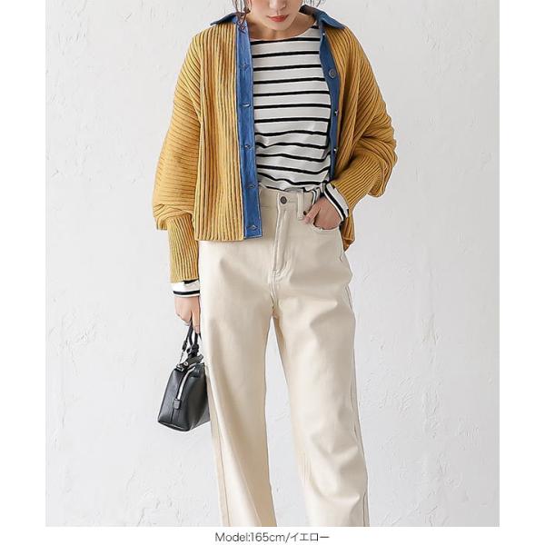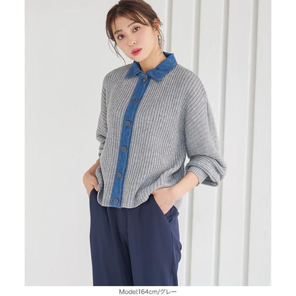 カーディガン ニットカーディガン レディース トップス クロップド デニム 長袖 リブ 羽織り 襟付き C5993