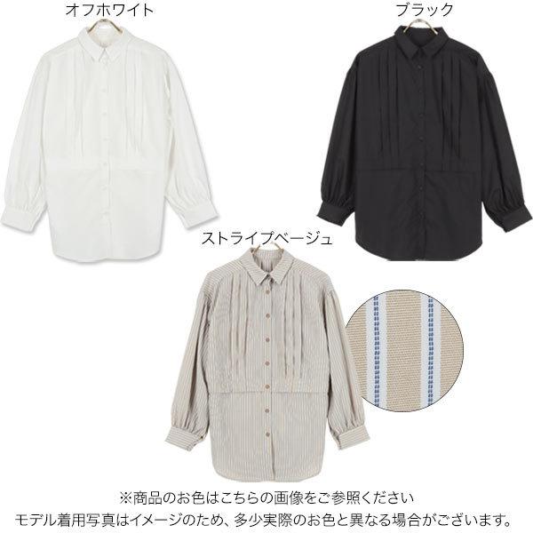 春 フェイクシャツチュニック レディース トップス 長袖 ストライプ ゆったり 体型カバー 白 黒 C5994
