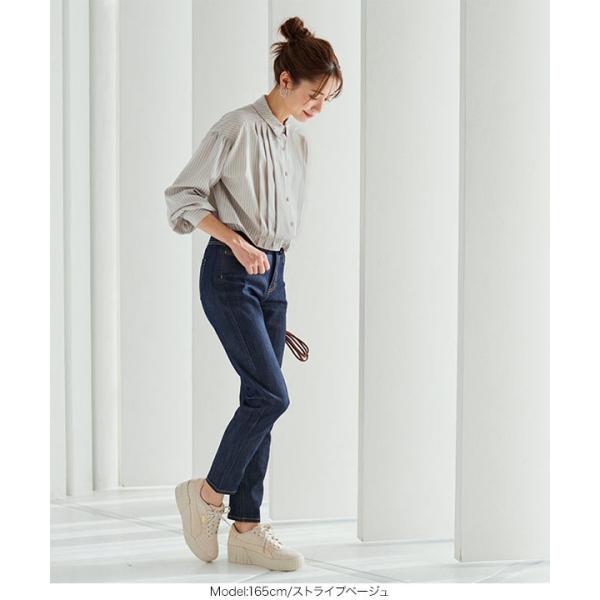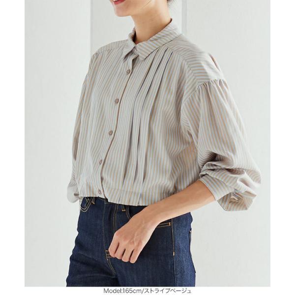 チュニック レディース トップス 春 ゆったり 体型カバー フェイクシャツ 長袖 ストライプ C5994