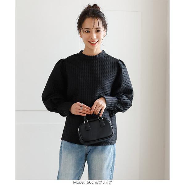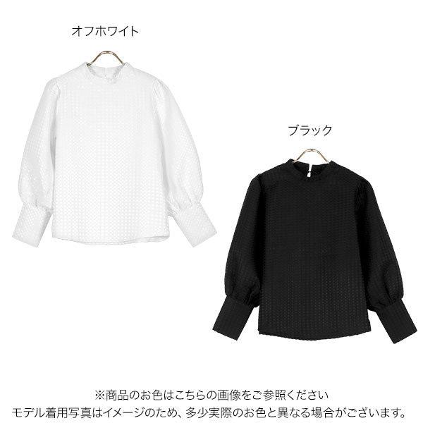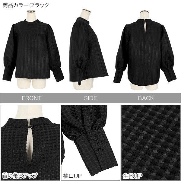 ブラウス プルオーバー トップス レディース ボトルネック 袖コンシャス ドット ジャガード ボリュームスリーブ ハイネック C5916