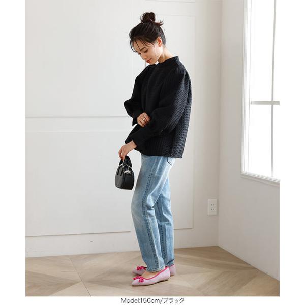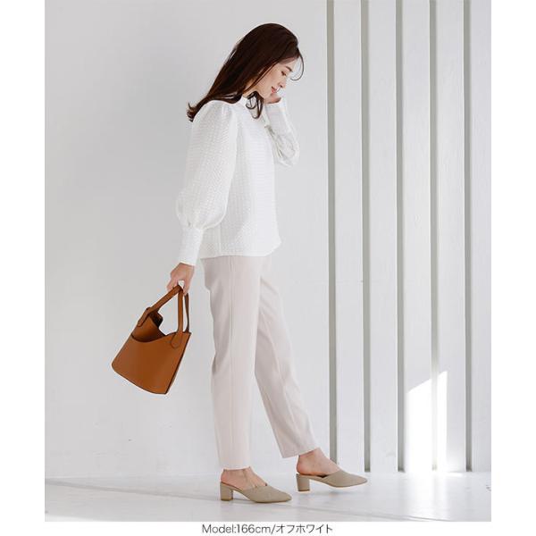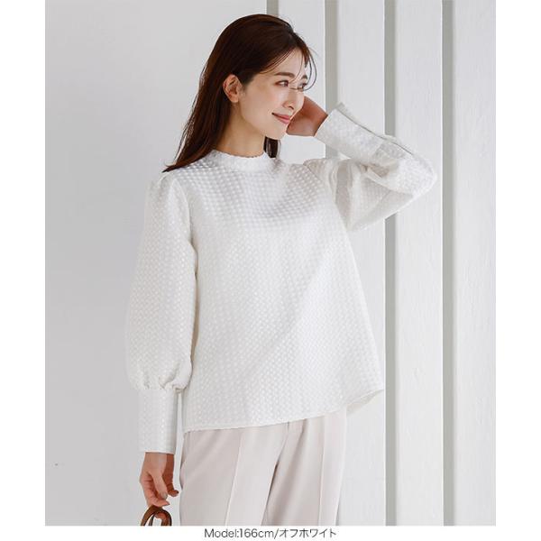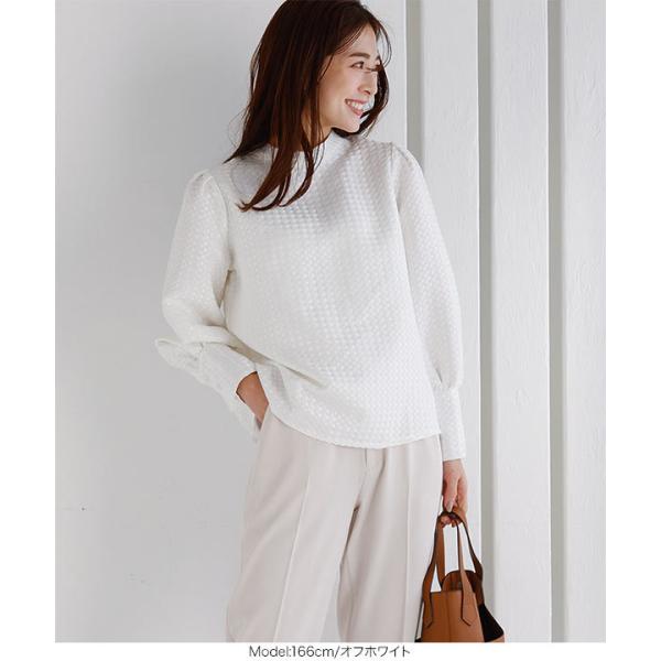 ブラウス プルオーバー トップス レディース ボトルネック 袖コンシャス ドット ジャガード ボリューム...