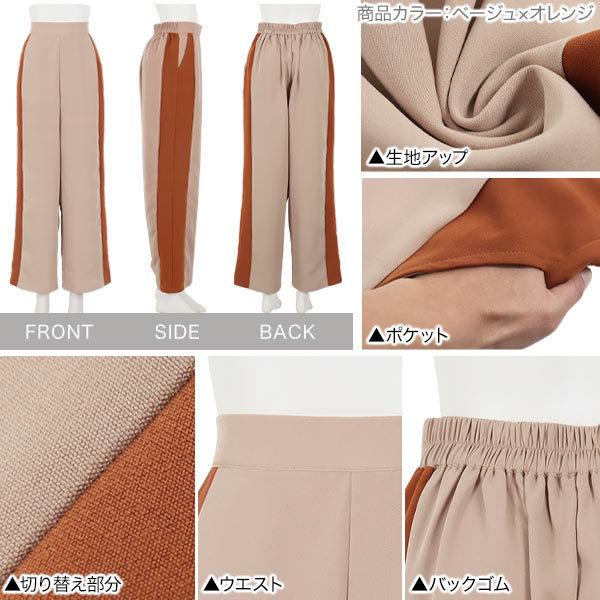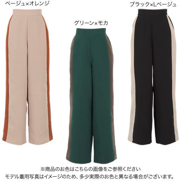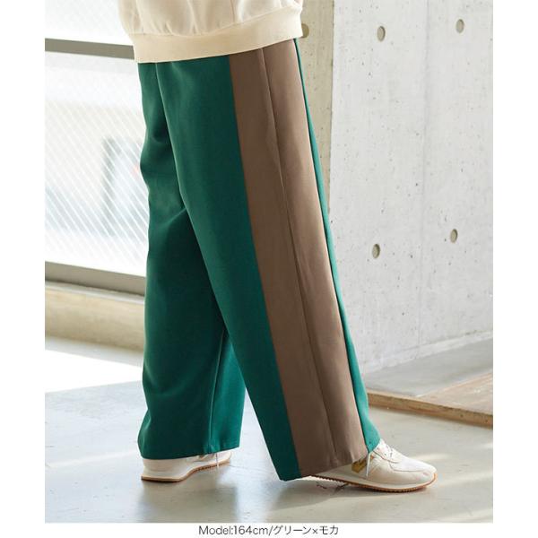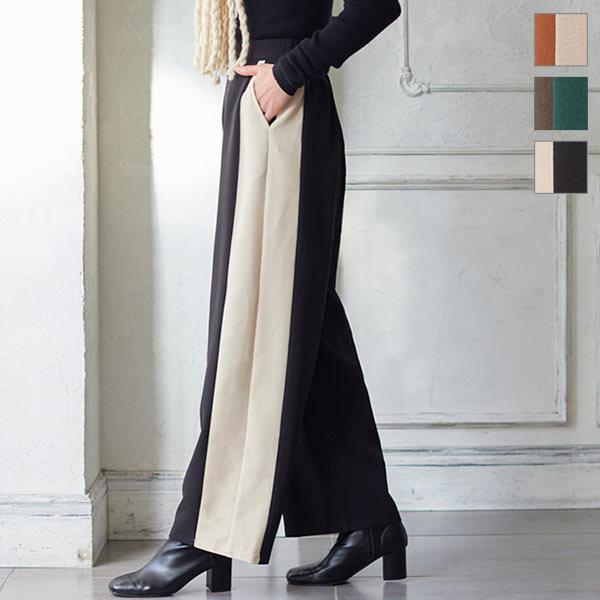 ワイドパンツ レディース ボトムス 冬 ゆったり サイドライン ストレート ロング バックゴム リラックス M3547