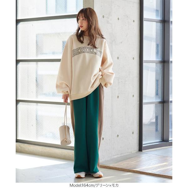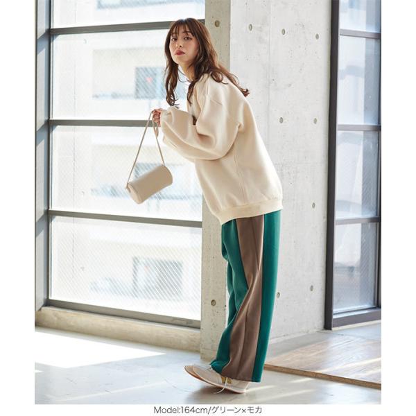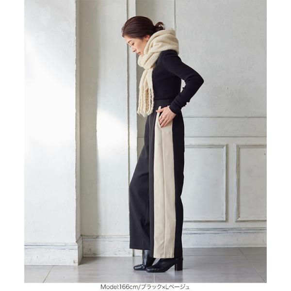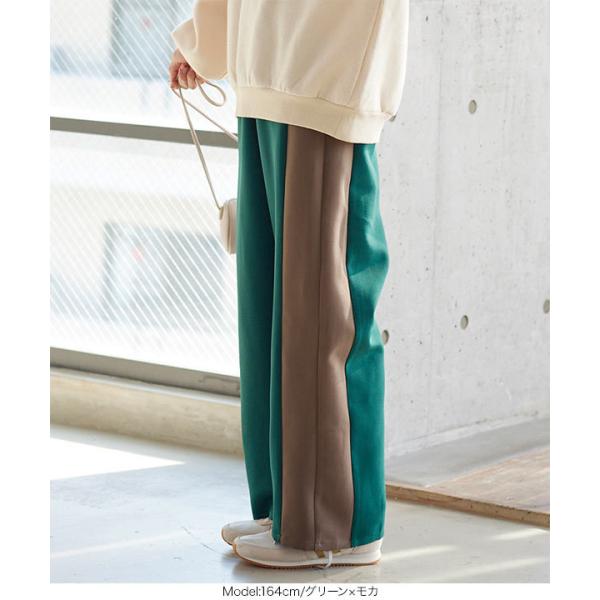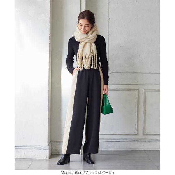 ワイドパンツ レディース ボトムス 冬 ゆったり サイドライン ストレート ロング バックゴム リラックス...