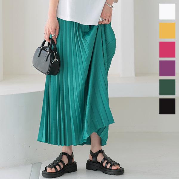 サテンカラーロングプリーツスカート