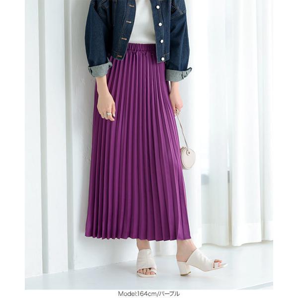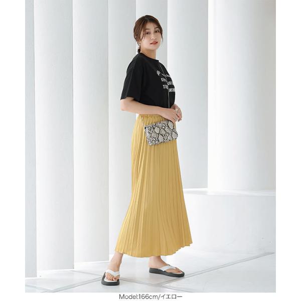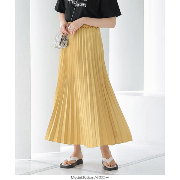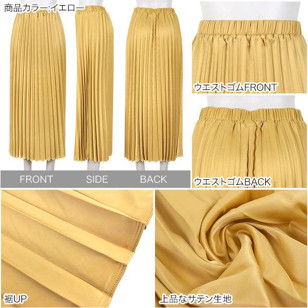 スカート プリーツスカート レディース ウエストゴム ゆったり フレアスカート マキシ サテン ロング プ...