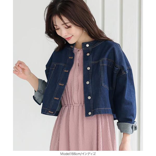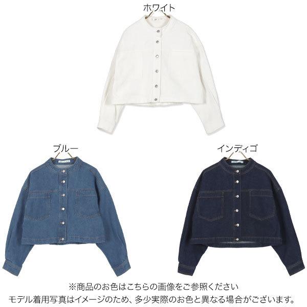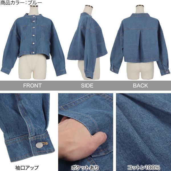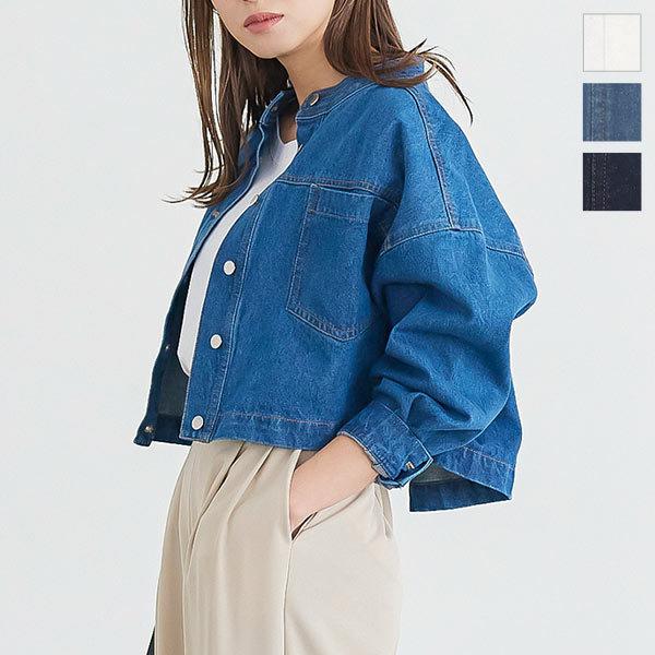 Gジャン レディース アウター 春 デニム ビッグシルエット コットン ショート丈 着回し バンドカラー 綿 K1113