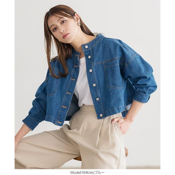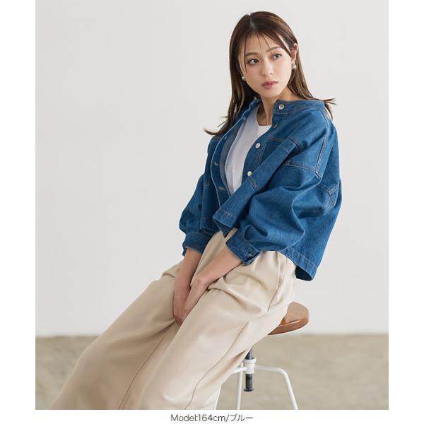 着回し バンドカラービッグシルエットGジャン レディース アウター ショート丈 デニム コットン 綿 デイリー K1113