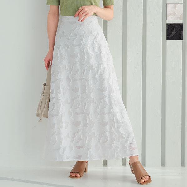 春 フラワージャガードAラインスカート レディース ボトムス ロング丈 バックゴム 上品 きれいめ 白 黒 M3551
