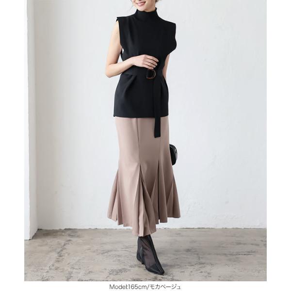 スカート マーメイドスカート レディース ボトムス 春 プリーツ バックウエストゴム サイドファスナー ...
