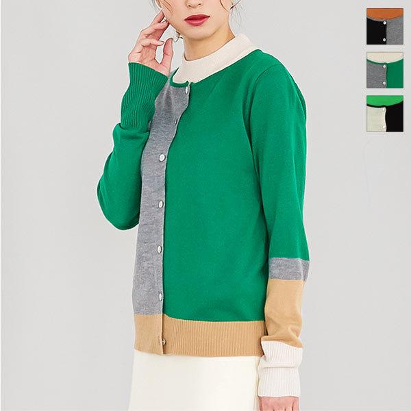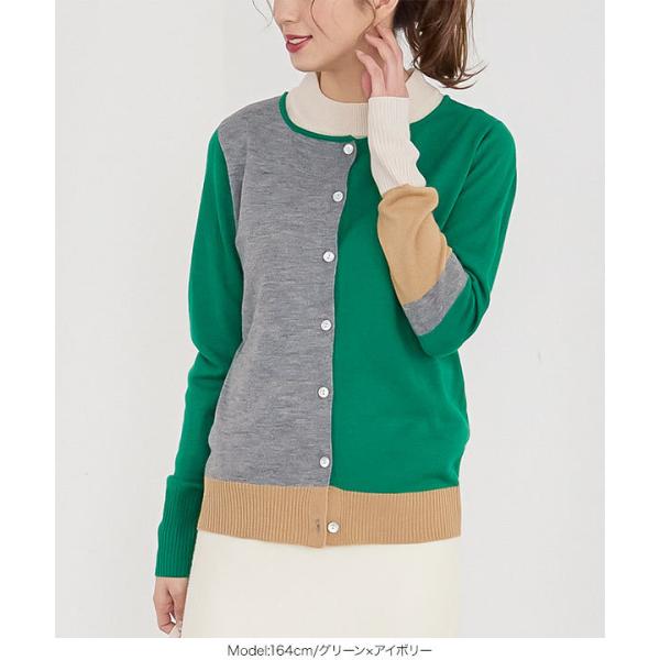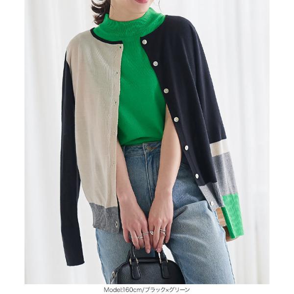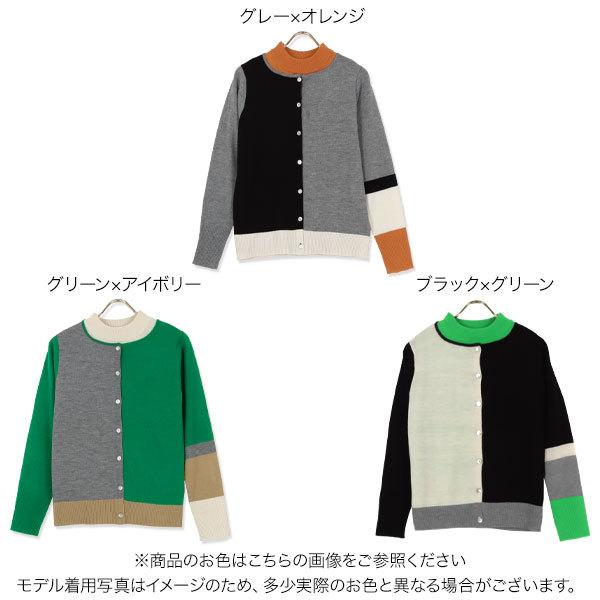 着回し ノースリハイネックニット バイカラーニットカーディガン レディース トップス アウター 長袖 レイヤード C5921