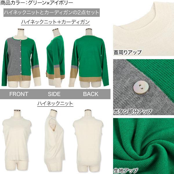 カーディガン ニット レディース トップス ノースリ ハイネックニット 着回し バイカラー アウター レイヤード C5921