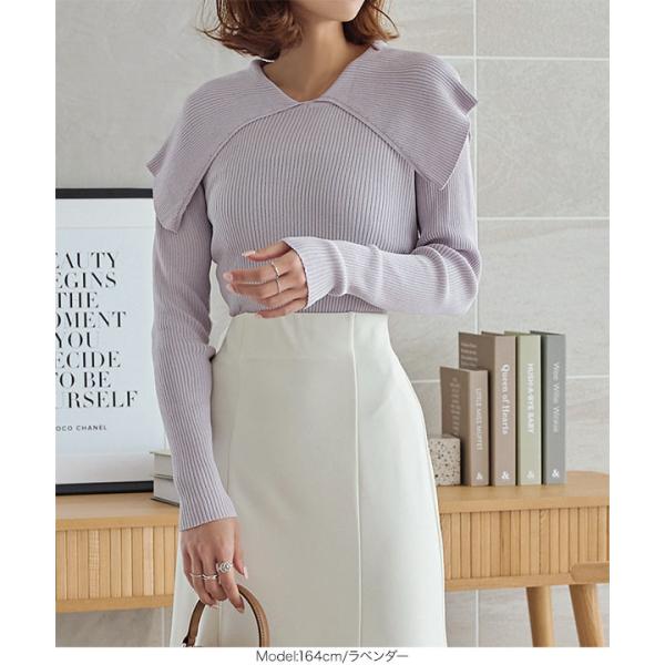 ニット トップス レディース トップス 春 夏 セーラー襟 長袖 セーラーカラー インナー ボーダー C6031