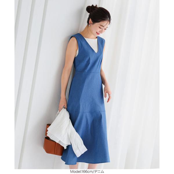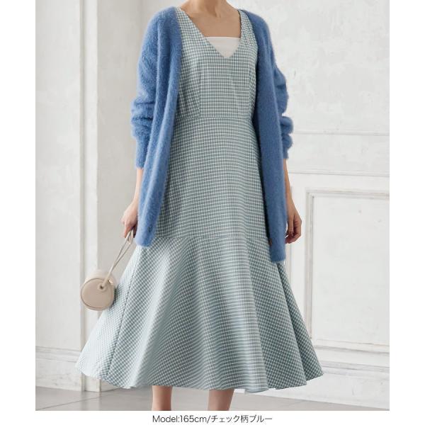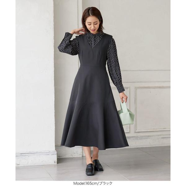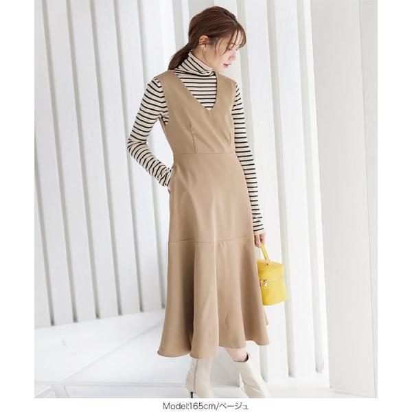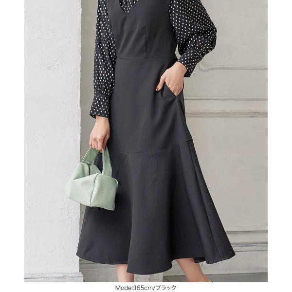 ジャンパースカート レディース ジャンスカ マーメイド Vネック レイヤード バックゴム フェミニン E3005