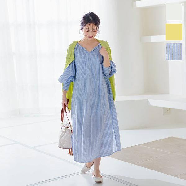 ワンピース Vネック ふんわり ロング カフタンワンピース レディース ゆったり デイリー E3018