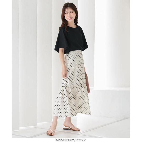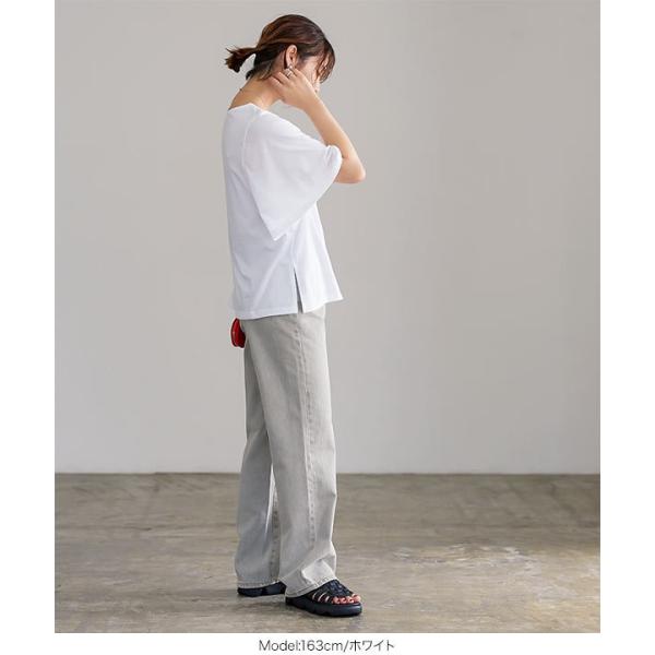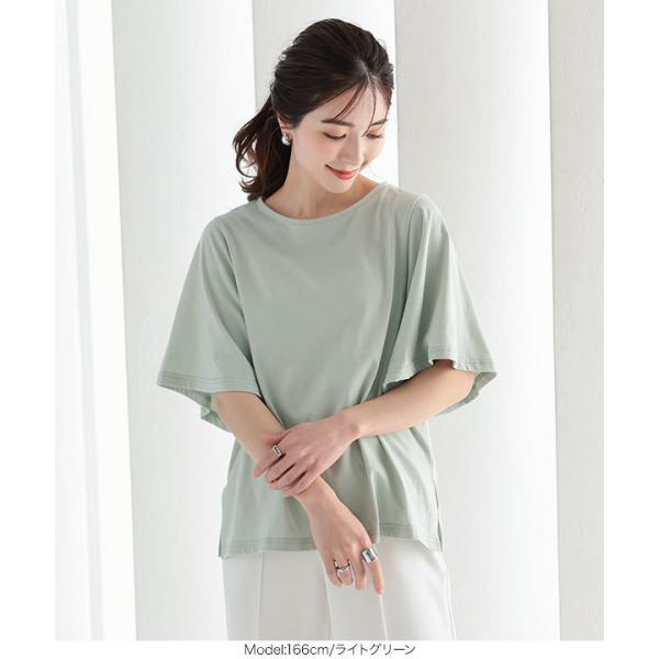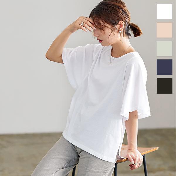 Tシャツ カットソー トップス レディース 体型カバー ゆったり 二の腕カバー フレア C6104