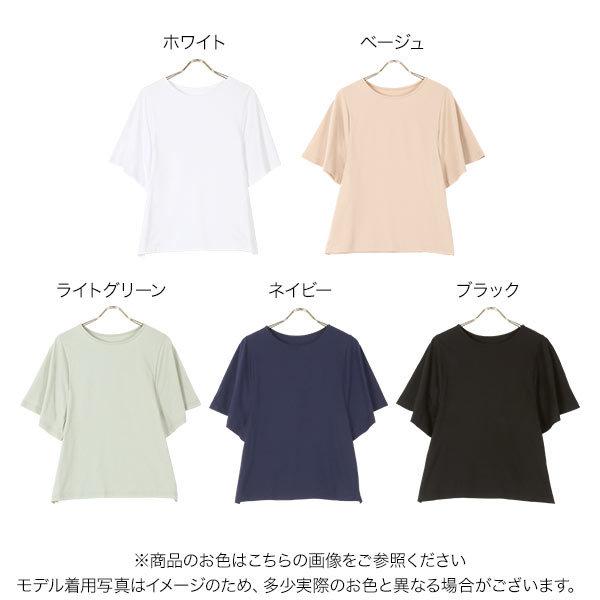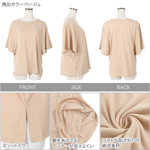 体型カバー ウイングスリーブプルオーバー 二の腕 カバー フレア カジュアル フェミニン ゆったり 丸首 カットソー C6104