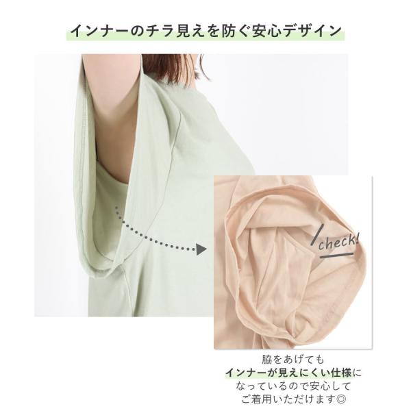 腕をあげてもインナーが見えにくいデザイントップス◎