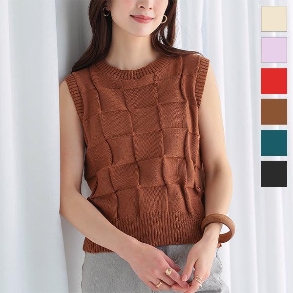 ニット トップス レディース 夏 ノースリーブ サマーニット ベスト ベーシック イントレチャート シンプル C6109