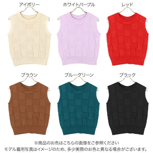 ベーシック イントレチャートニットトップス レディース ノースリーブ サマーニット ベスト シンプル ミドルゲージ C6109