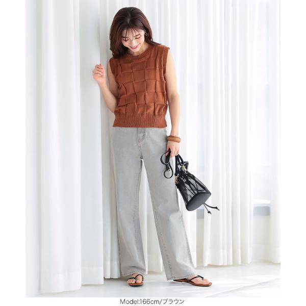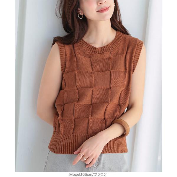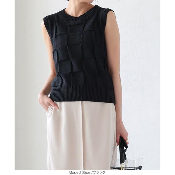 ニット トップス レディース 夏 ノースリーブ サマーニット ベスト ベーシック イントレチャート シンプ...