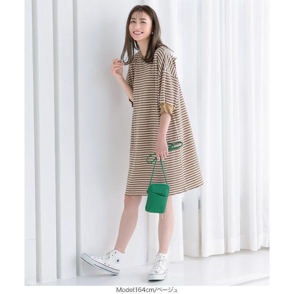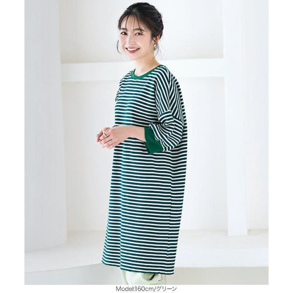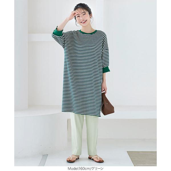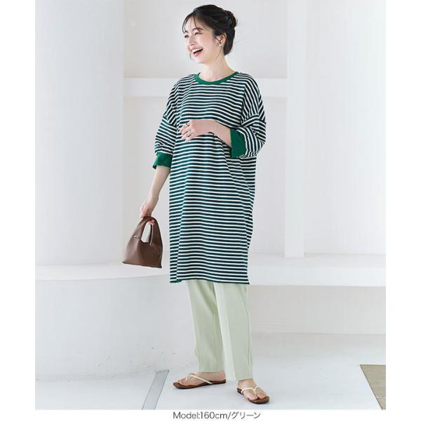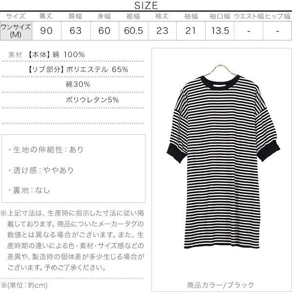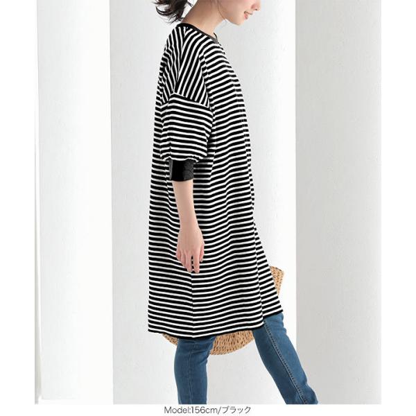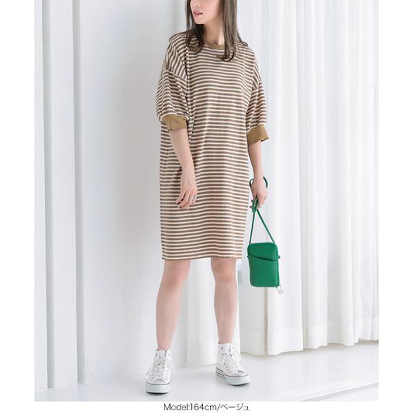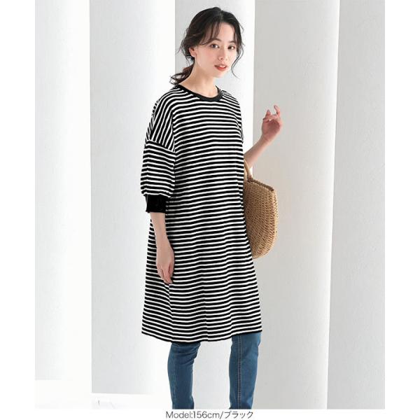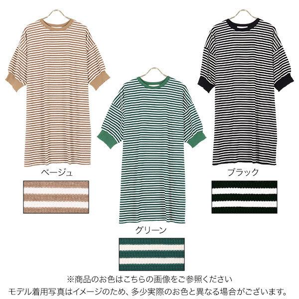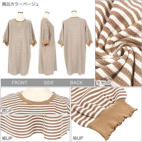 ワンピース チュニック レディース 半袖 ぽわん袖 ゆったり ボーダー柄 膝丈 サーマル 大人フェミニン ...