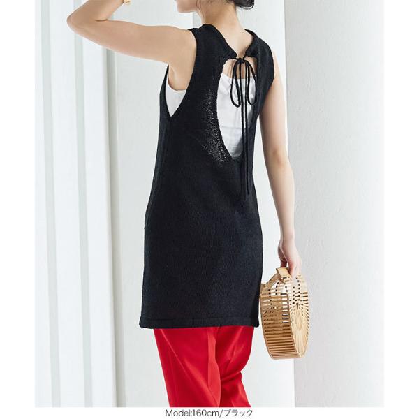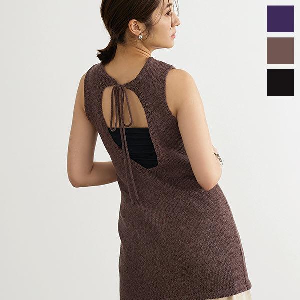ノースリーブニット サマーニット レイヤード バックオープン レディース バックシャン レイヤー フェミ...