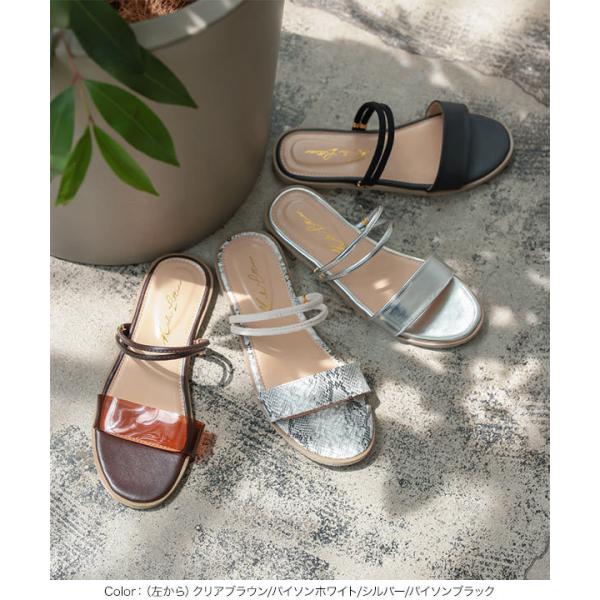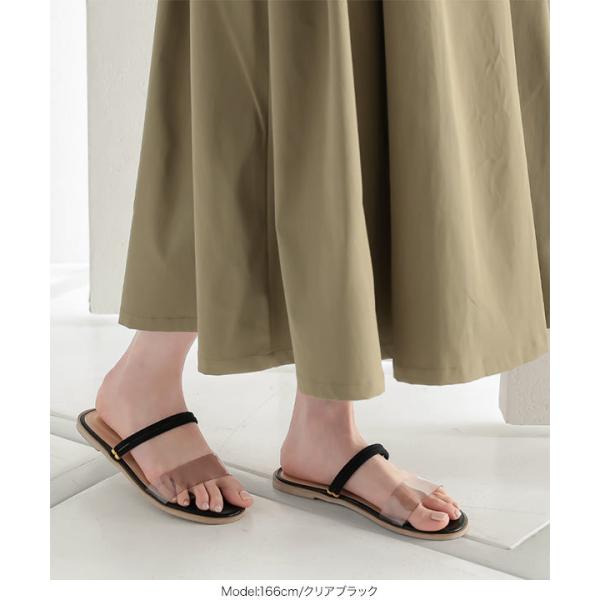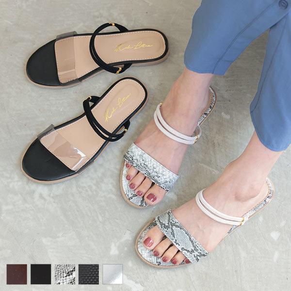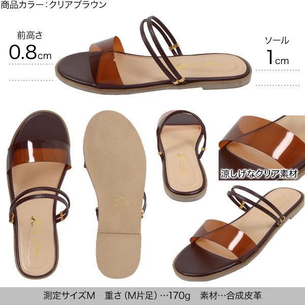 ペタンコ 2wayフラットサンダル レディース 靴 クリア ワンベルト ダブルストラップ 履きやすい 歩きやすい I2429